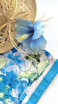 PAÑUELO FLOR AZUL TURQUEZA 70x70
